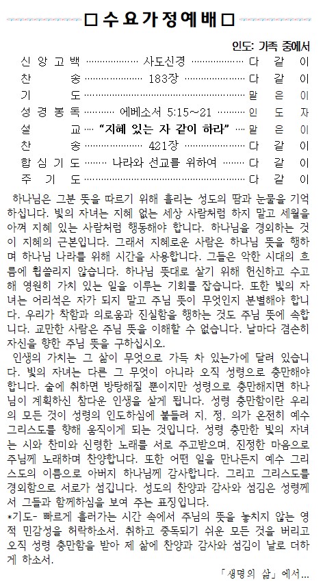 11월 3일 수요가정예배