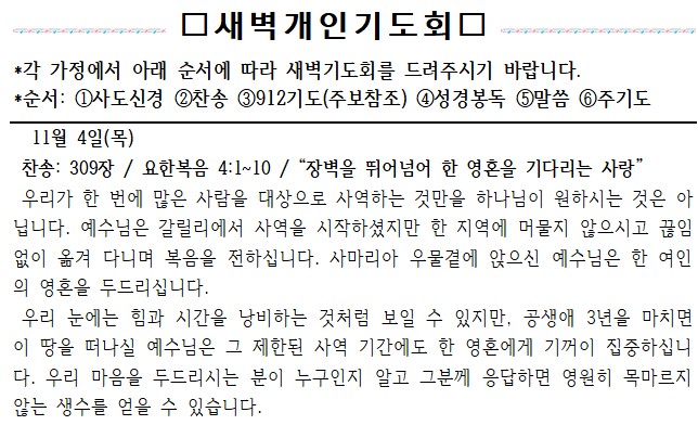 11월 4일(목) 새벽개인기도회
