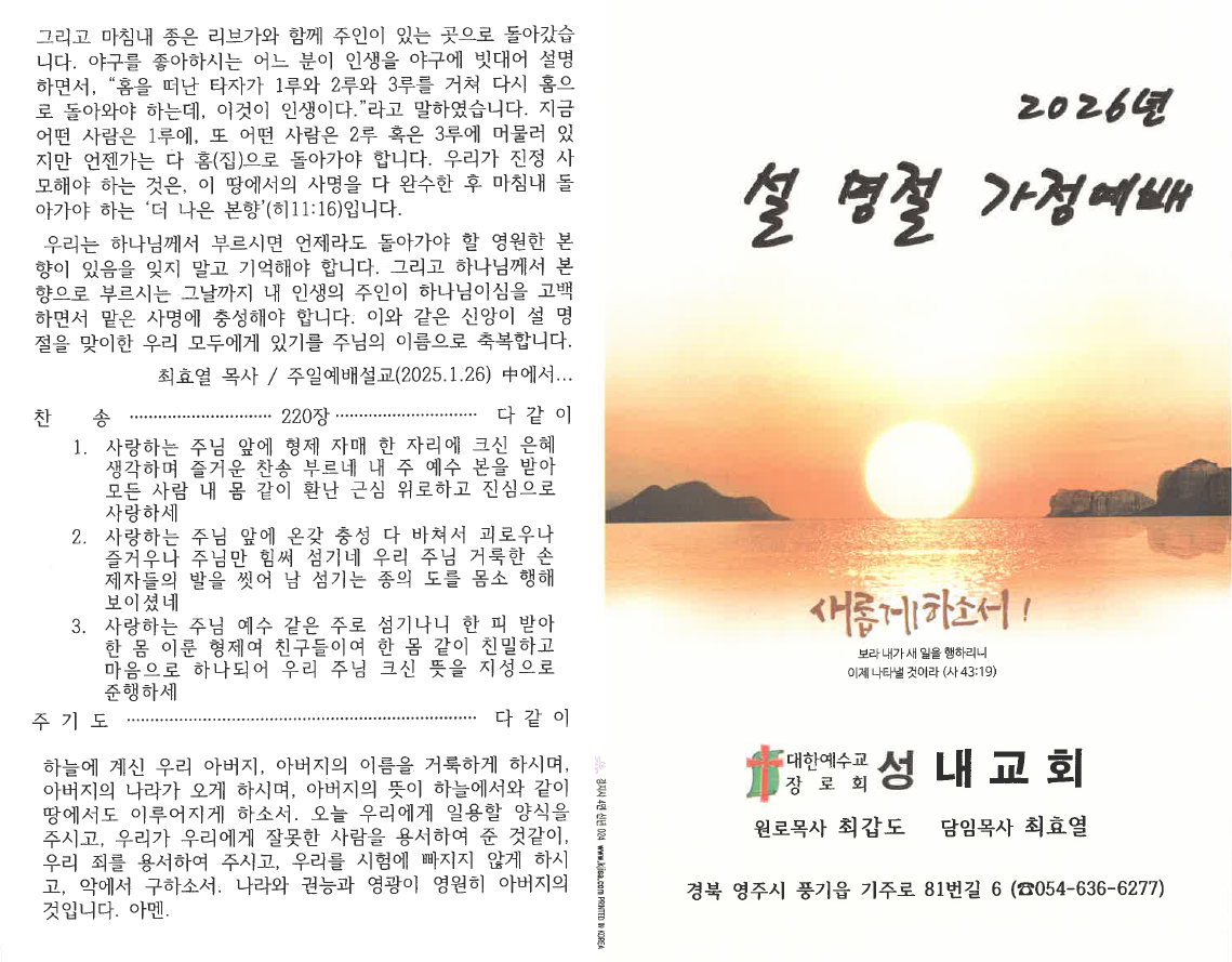 2026년 설 명절 가정예배 순서지