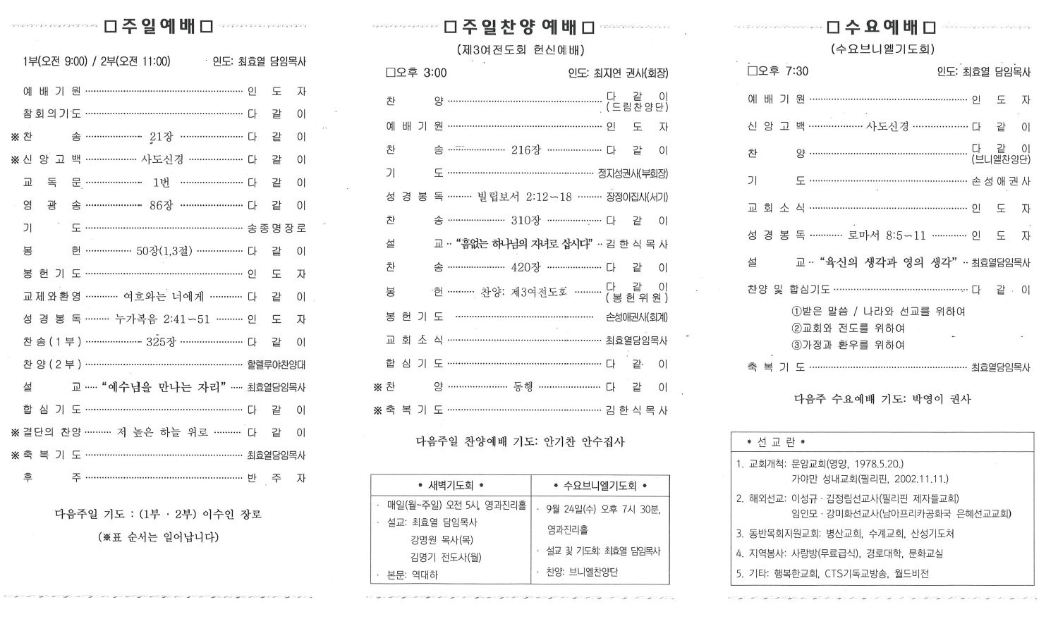 예배시간/교회위치