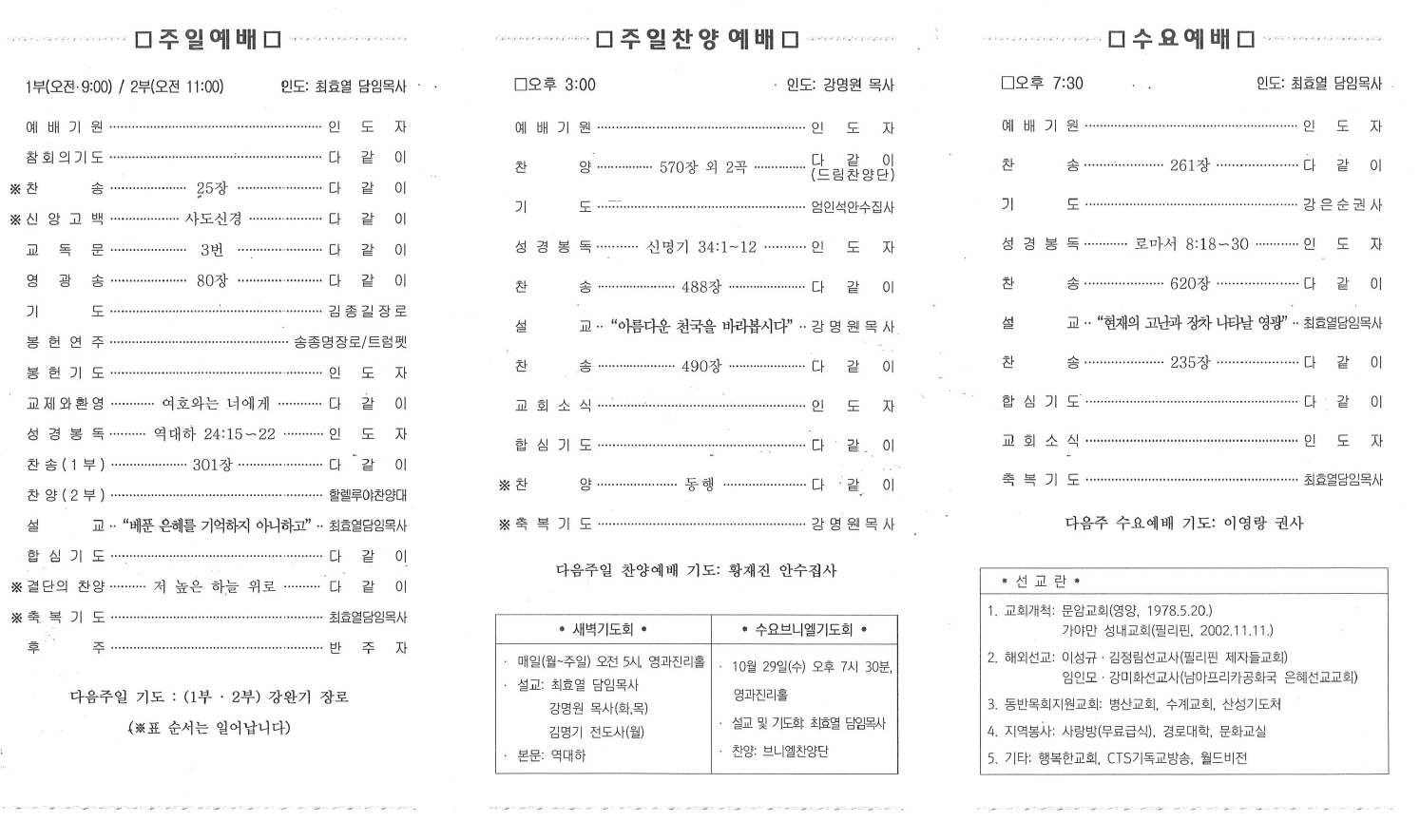 예배시간/교회위치