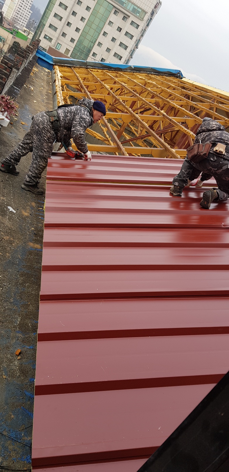 1.17 교회리모델링 벽체와 지붕 판넬 공사 진행중